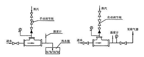 ,调节蒸汽侧阀门(手动或电动调节阀),就可得到所需温度的热水。